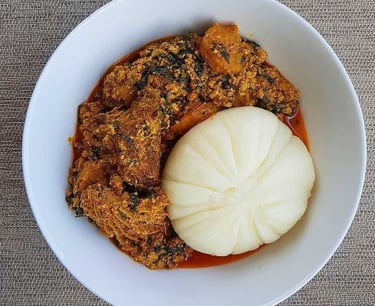 [#E201] Nigerian "Eba" with "Egusi" Stew
