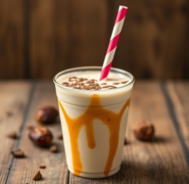 Refreshing chilled tiger nut milk, with dates, and ginger mix.